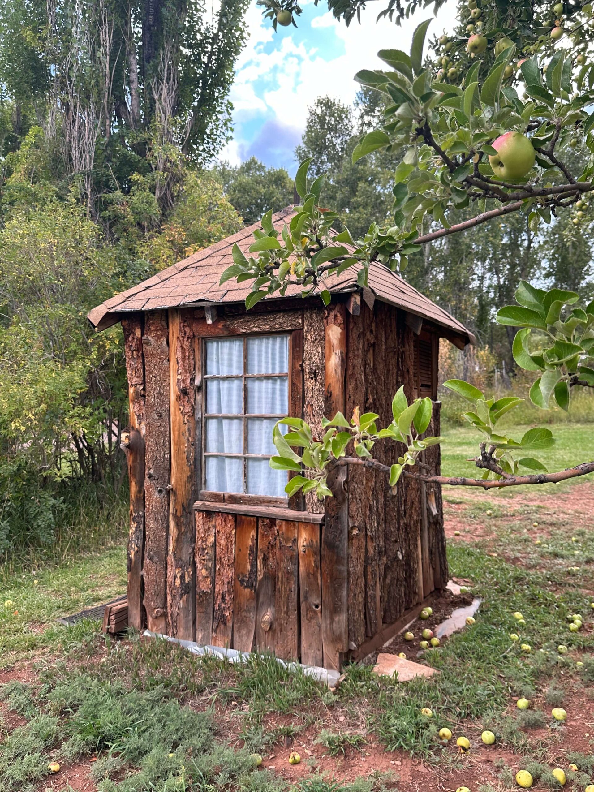 This spacious structure serves as either a dining hall for larger groups or as an art space. It is a high and airy wood structure with passive solar design, supplemental wood stove, comfortable furniture, and commercial sinks. A covered veranda with tables and rocking chairs offers extended possibilities for outdoor living. This common space provides the strongest wifi connection for guests.